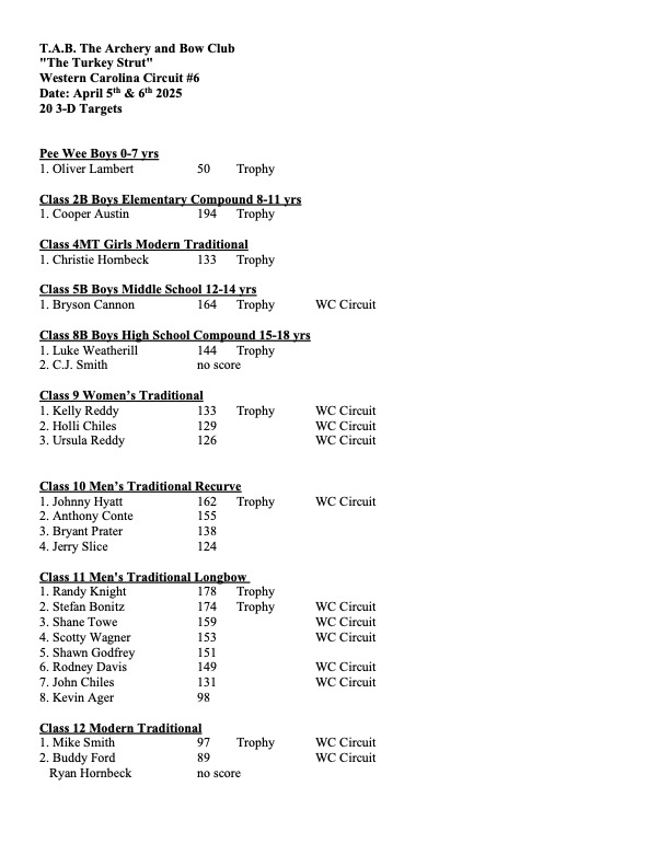 All club and 3D circuit tournaments are open registration. Events listed are club 3D events unless otherwise